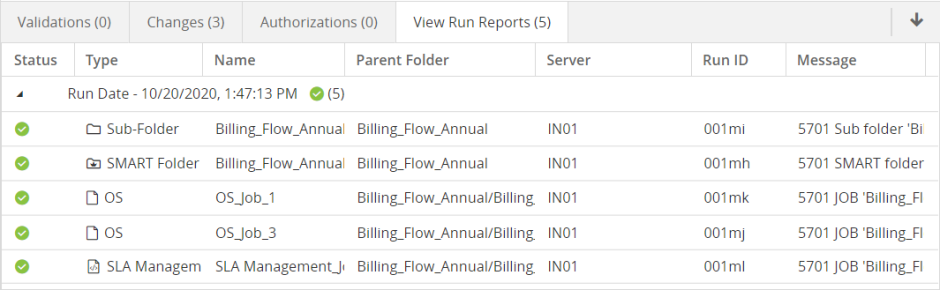 To run selected jobs or folders, click Run and Run Selected.